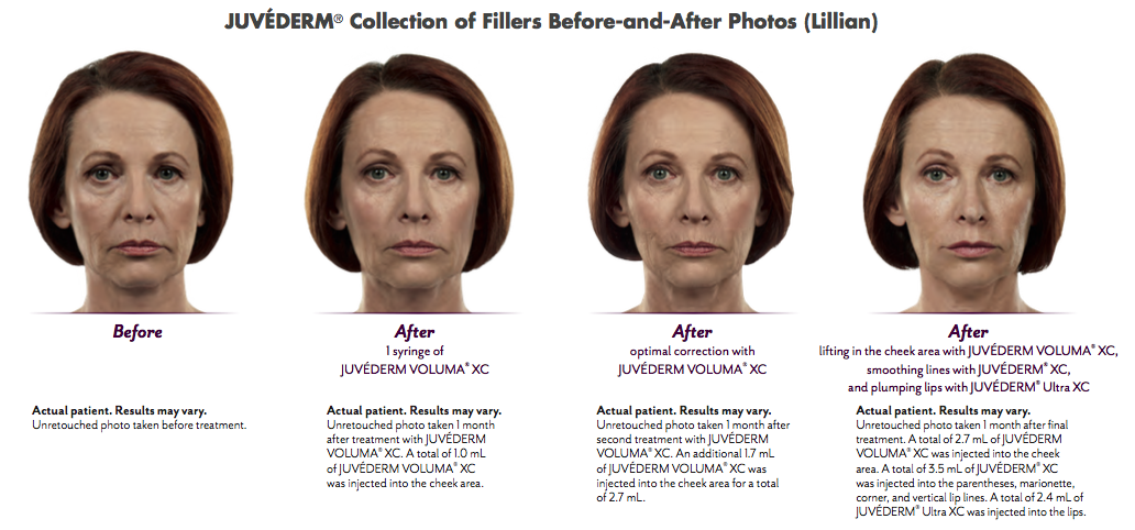 JUVÉDERM® XC and Restylane are dermal fillers using a hyaluronic acid, which is a smooth gel that can be directly injected into a line or wrinkle, causing the wrinkle to fill in and soften. They are FDA approved to treat lines and wrinkles for up to a year.